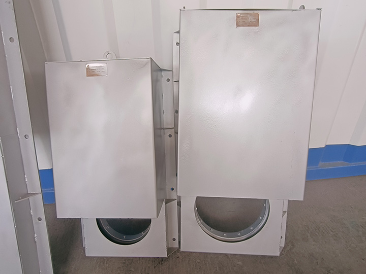 产品由阀体、阀板、浮箱组成,当晴天或雨水初期,雨水井内污水液位较低,阀板靠浮箱自重打开,污水口处于开启状态,雨水管网污水通过污水流入污水管网,当雨天雨水管网水量增大,随水位上升,浮箱浮力上浮控制阀板关闭排污口,停止排污,雨水流入附近河道,湖泊。当雨量减小,浮箱随液位下降而复位开启排污口,正常排污,实现了雨污分流。