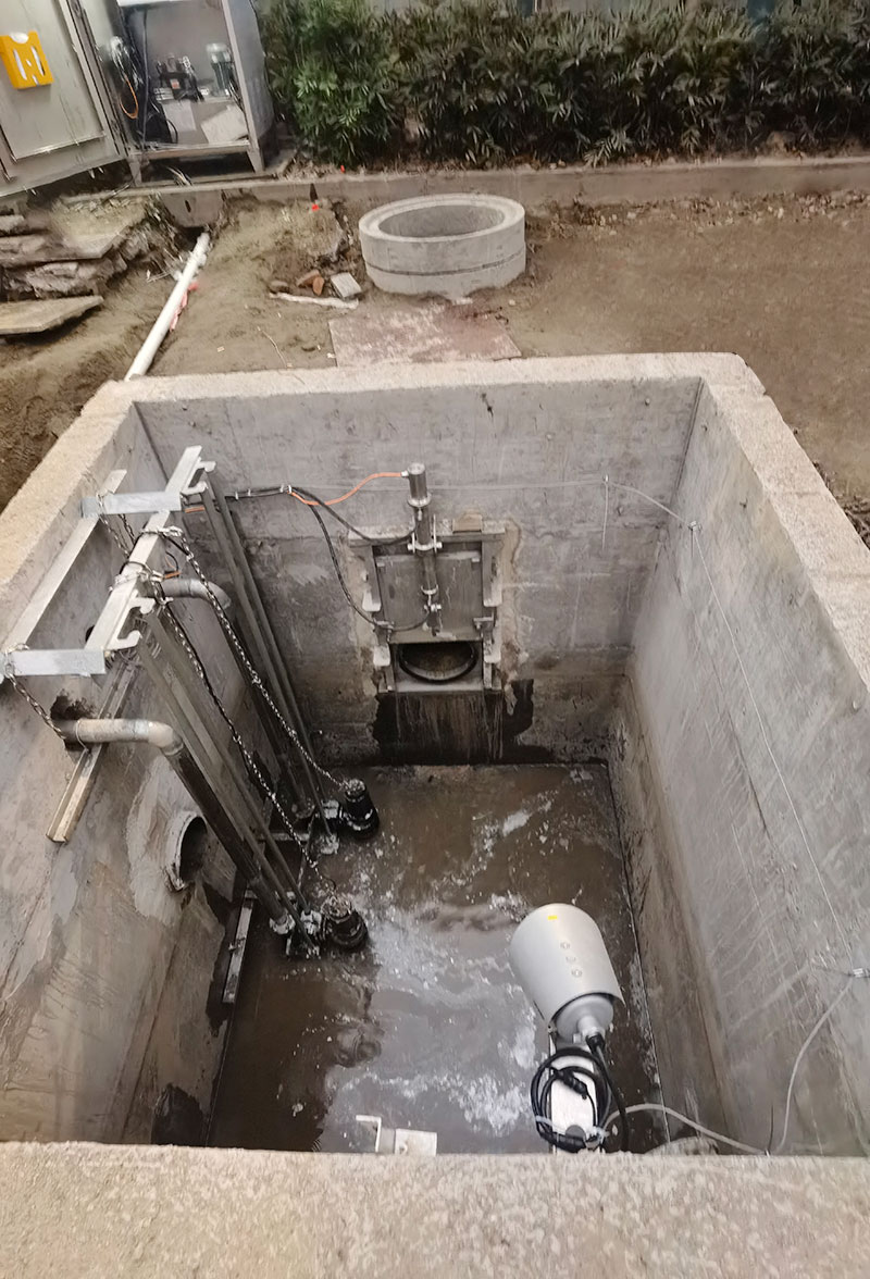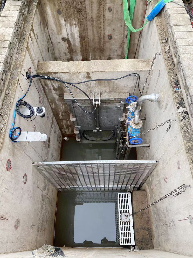 液控截流井截流井主体是钢混结构,配套截污闸门、雨水闸门、进水格栅、污水提升装置、液压控制系统、压力传感器、雨量计、防雨控制柜、智能云监控平台等。截污闸门采用不锈钢平板限流闸,雨水闸门根据工况可选用平板限流闸、液动下开式堰门或液动旋转堰门,密封性好,液压驱动,动力足,启闭自如。在污水不能自流时,增选污水提升装置,采用耦合机构,阀门管道采用304不锈钢,安装维修方便,为防止垃圾堵塞水泵,进水口安装304不锈钢提蓝格栅,拦截大的垃圾物,提蓝采用专用耦合挂勾连接,清理时沿挂勾导杆提起,不需进入井内清理;监测系统采用压力传感器和雨量计控制,既可通过雨量大小控制闸门开启,也可通过压力传感器监测井下液位变化控制闸门开启,实现连锁控制,保证监测的准确性;控制系统采用智能云平台远程操作监控,实现无人值守,多点监控操作。